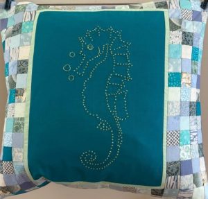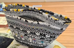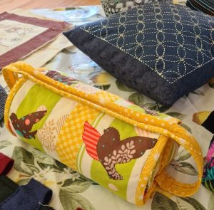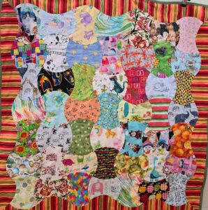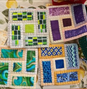 A way to use up scraps of fabric. Here are some of Carolyn’s examples, made for donation.